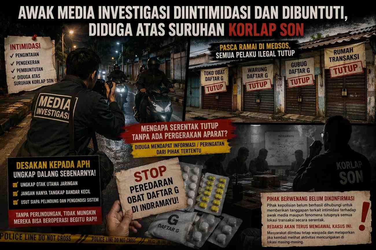 Indramayu, PartTimeNews.id – Pemberitaan mengenai jaringan obat daftar G pimpinan Arip alias Boni dan kordinator lapangan (Korlap) Son memasuki babak baru. Saat awak media investigasi melakukan peliputan langsung di lapangan, mereka mengalami intimidasi berupa pengejaran dan pembuntutan yang diduga kuat atas suruhan Son, Sabtu 18/4/2026.