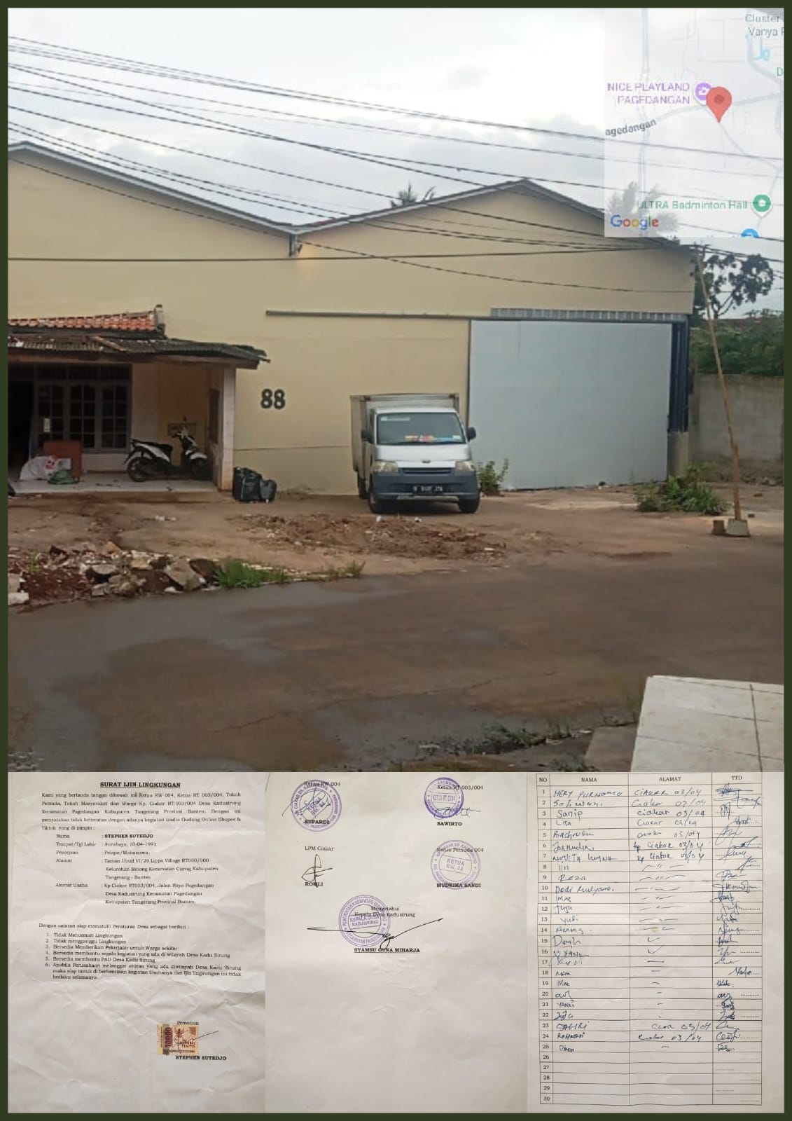 Kabupaten Tangerang, PartTimeNews.id – Diduga Gudang Online Shopp Berdiri Di Kadusirung Kabupaten Tangerang Tanpa Di lengkapi Izin Resmi (12/02/2026).