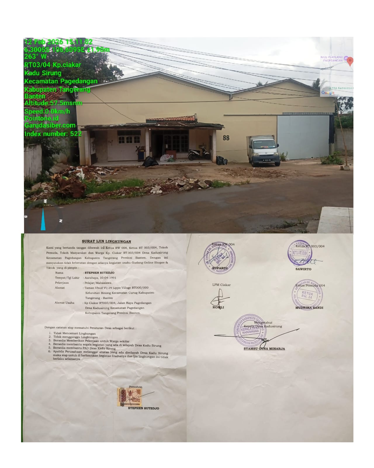 Kabupaten Tangerang, PartTimeNews.id – Gudang Online Shopp Kadusirung Diduga Tidak mengantongi Izin Persetujuan Bangun Gedung Dan Tanda Daftar Gedung. (13/02/2026).