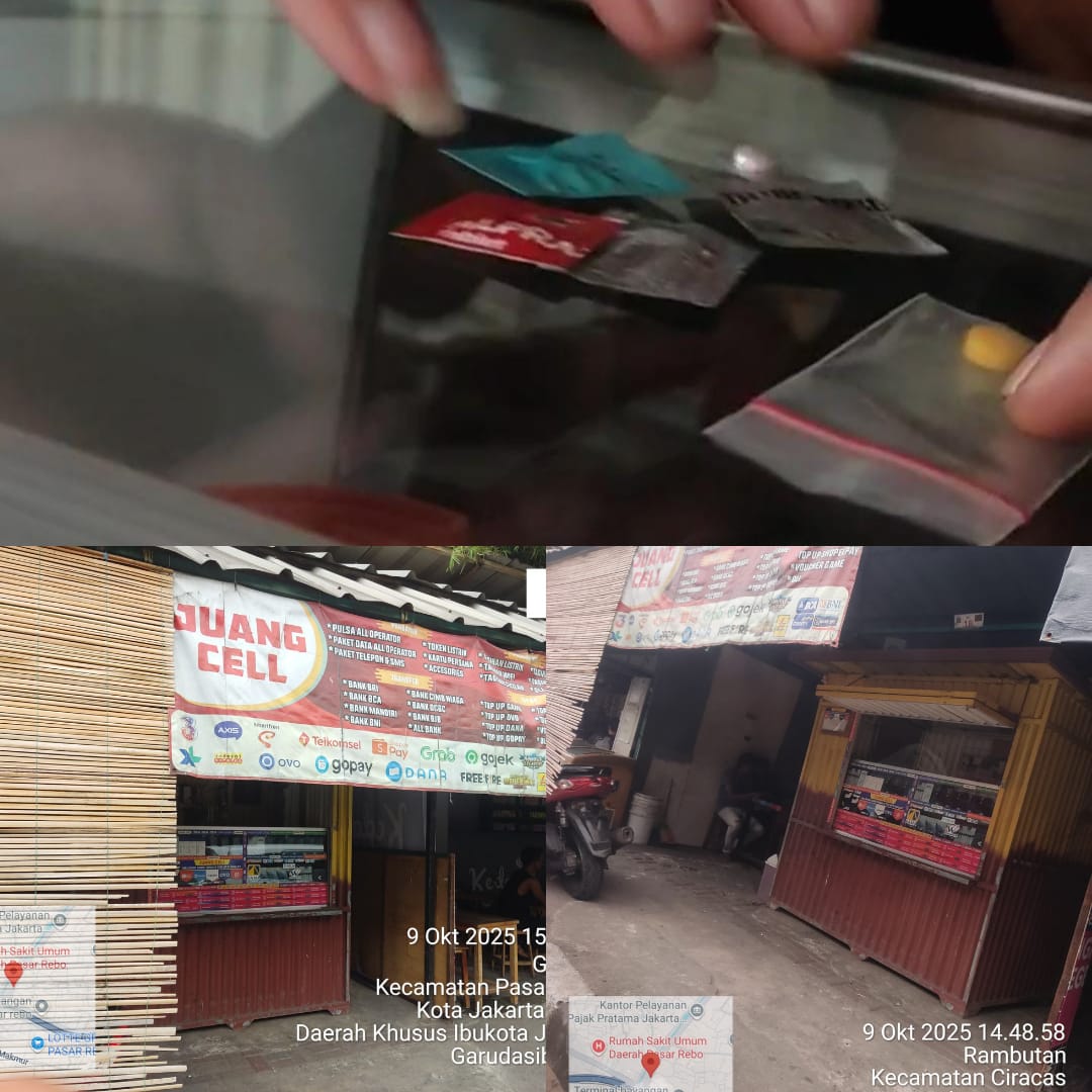 Jakarta Timur, Parttimenew.id – Tim investigasi Parttimenews.id berhasil mengungkap praktik peredaran obat keras daftar G yang berlangsung secara terselubung di kawasan Rambutan, Kecamatan Ciracas, Jakarta Timur. Berdasarkan hasil penelusuran di lapangan, aktivitas penjualan dilakukan di sebuah warung kecil yang tampak seperti konter pulsa biasa, namun diduga menjadi tempat transaksi obat keras terlarang.