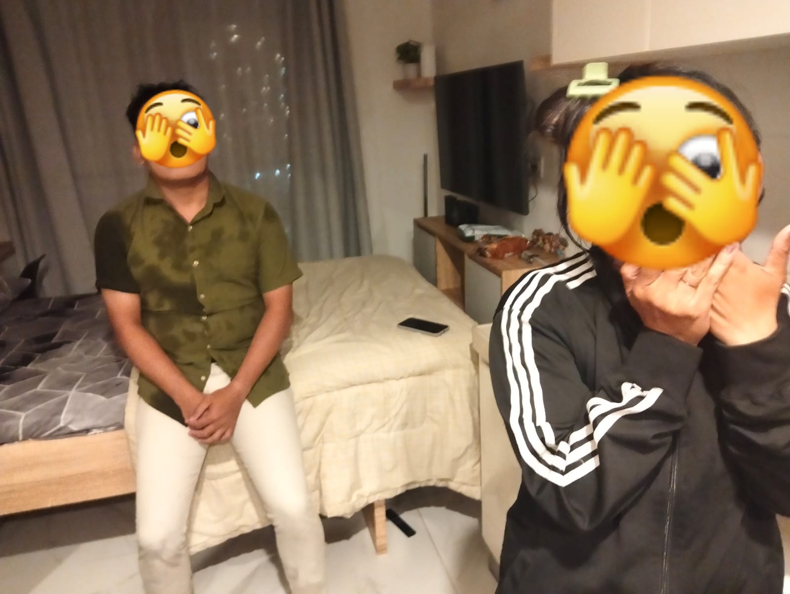 Setelah pintu dibuka, diduga mereka telah melakukan hubungan, Karena pakaian dalamnya berserakan di lantai. Setelah dilakukan wawancara singkat kemudian langsung dibawa ke kantor Polisi sesuai dengan tempat kejadian.