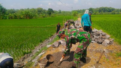Babinsa Bangun Jalan Menuju Sawah, Mempermudah Akses Petani Menuju Sawah